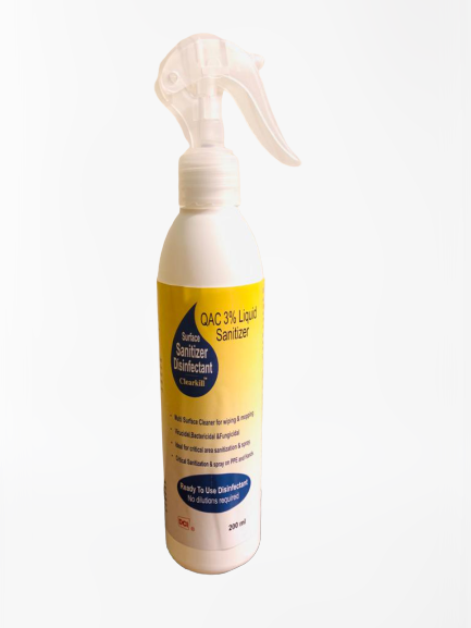 Clearkill Surface Sanitizer  kills a wider range of microorganisms rather than simply removing dirt, soils and impurities from surfaces. It can be sprayed on all types of surfaces such as, glass, wood, steel, ceramic, etc and even on cloth without the risk of damaging anything. It is safe to use in homes, hospitals, shops, clinics, restaurants.