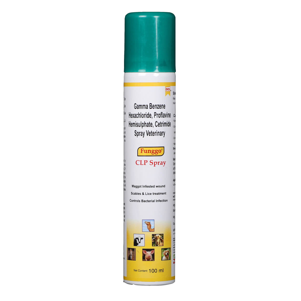 Funggo CLP Wound Treatment Spray ,Maggot Infested Wound Healing, Lice Treatment for All Animals (Gamma Benzene Hexachloride Proflavine Hemisulphate Cetrimide Spray), 100 ml